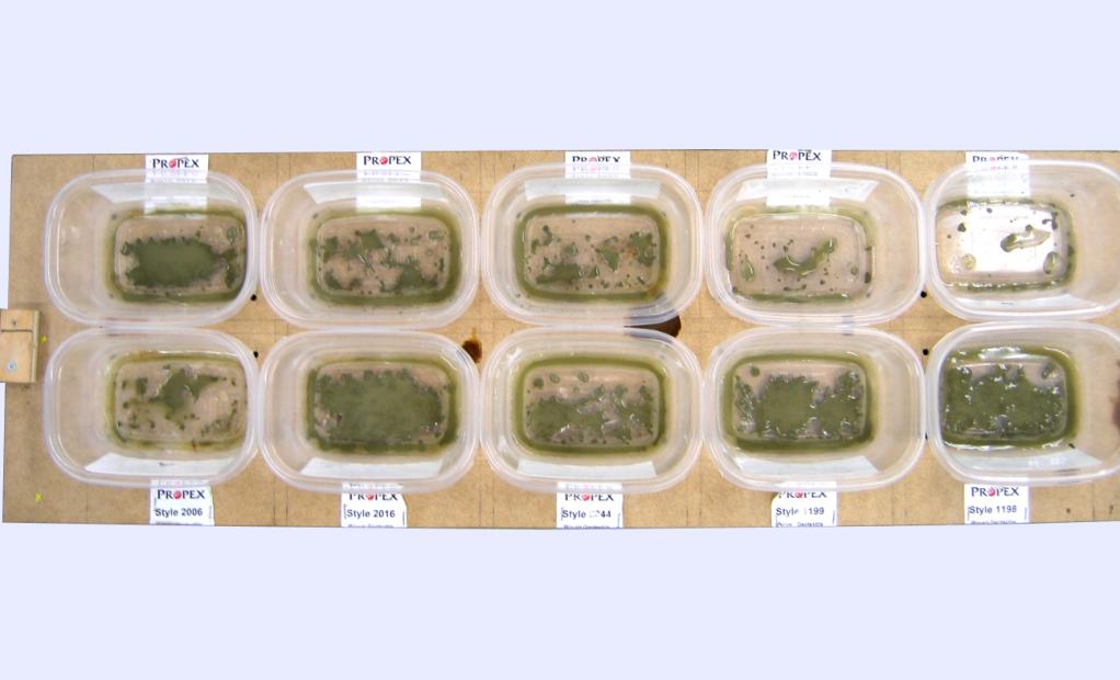 Figure 11: Collected bleed cement/water paste from fabrics tested with normal concrete in the box test.