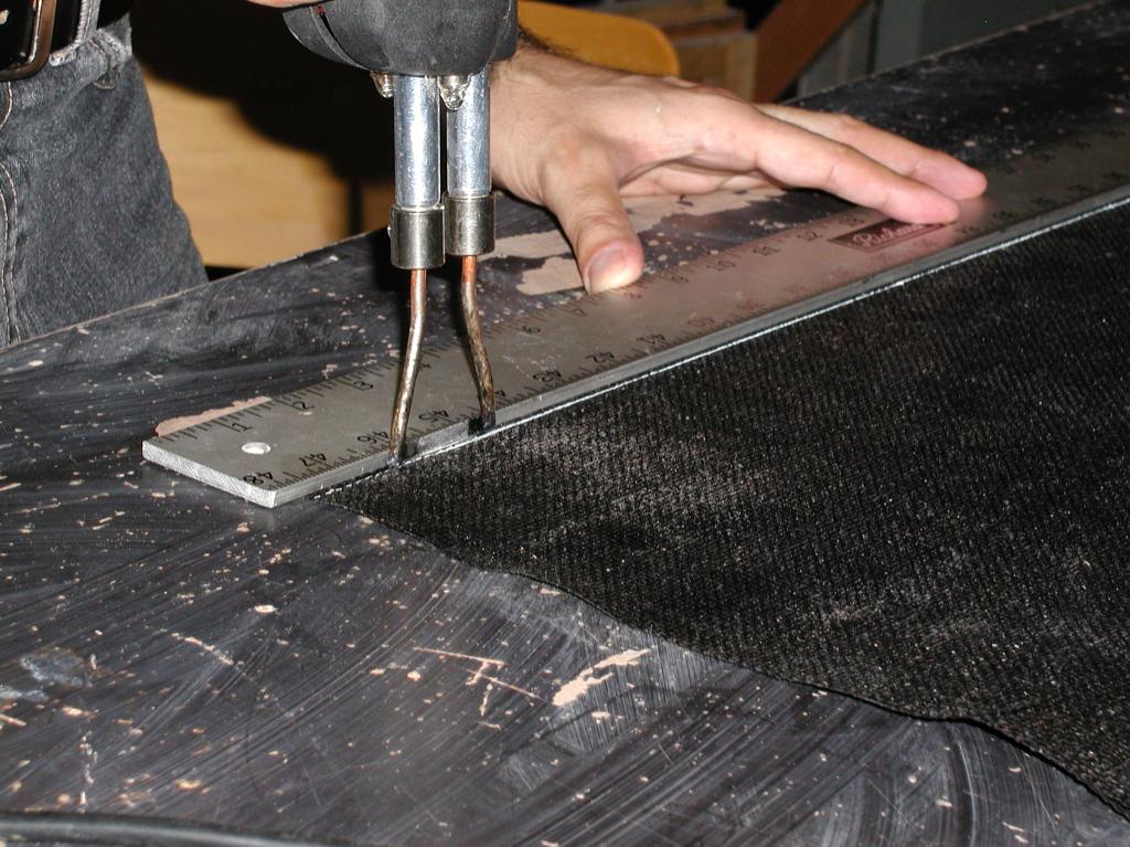 Figure 18: Soldering gun with the blade-shaped tip melting fabric and providing straight edge.
