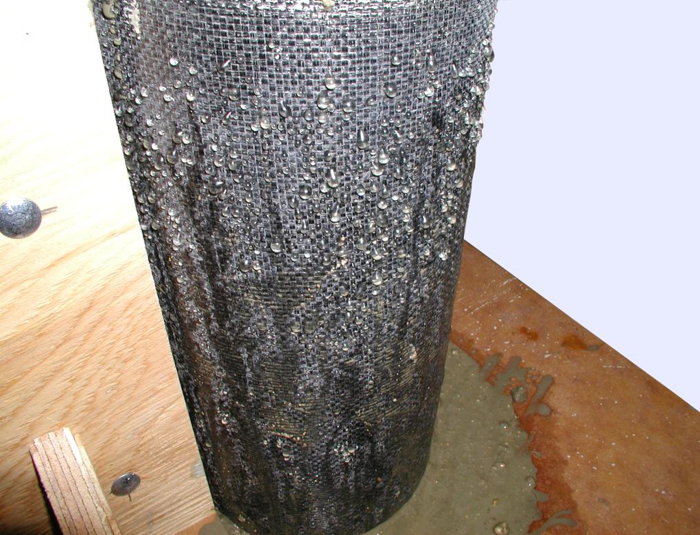 Figure 23: Bleed clear water from the walls of a 152 mm (6 in.) diameter fabric-formed concrete cylinder.