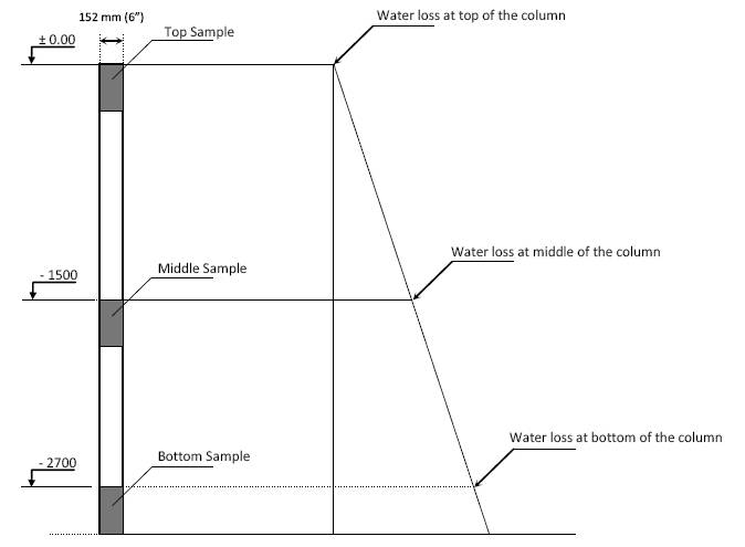 Figure 26: Assumed linear relationship between the height of a column and the water loss of the fresh concrete.