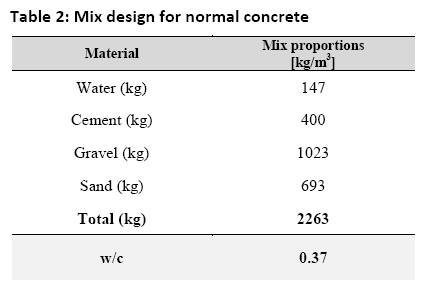 - Table 2: Mix design for normal concrete