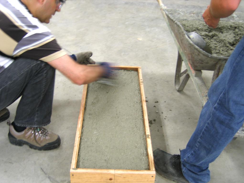 - Figure 9: Filling the box with fresh concrete.